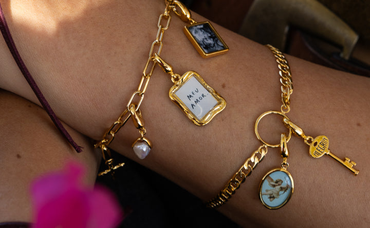Our portrait charms are a fresh, new way to honor those you love. Add a photo of your children, someone you have loved and lost or your pet. Designed to be a layering story with our protective charms. The clasps of all of our charms open and close so that they can be added to your favorite necklace and bracelet chains.