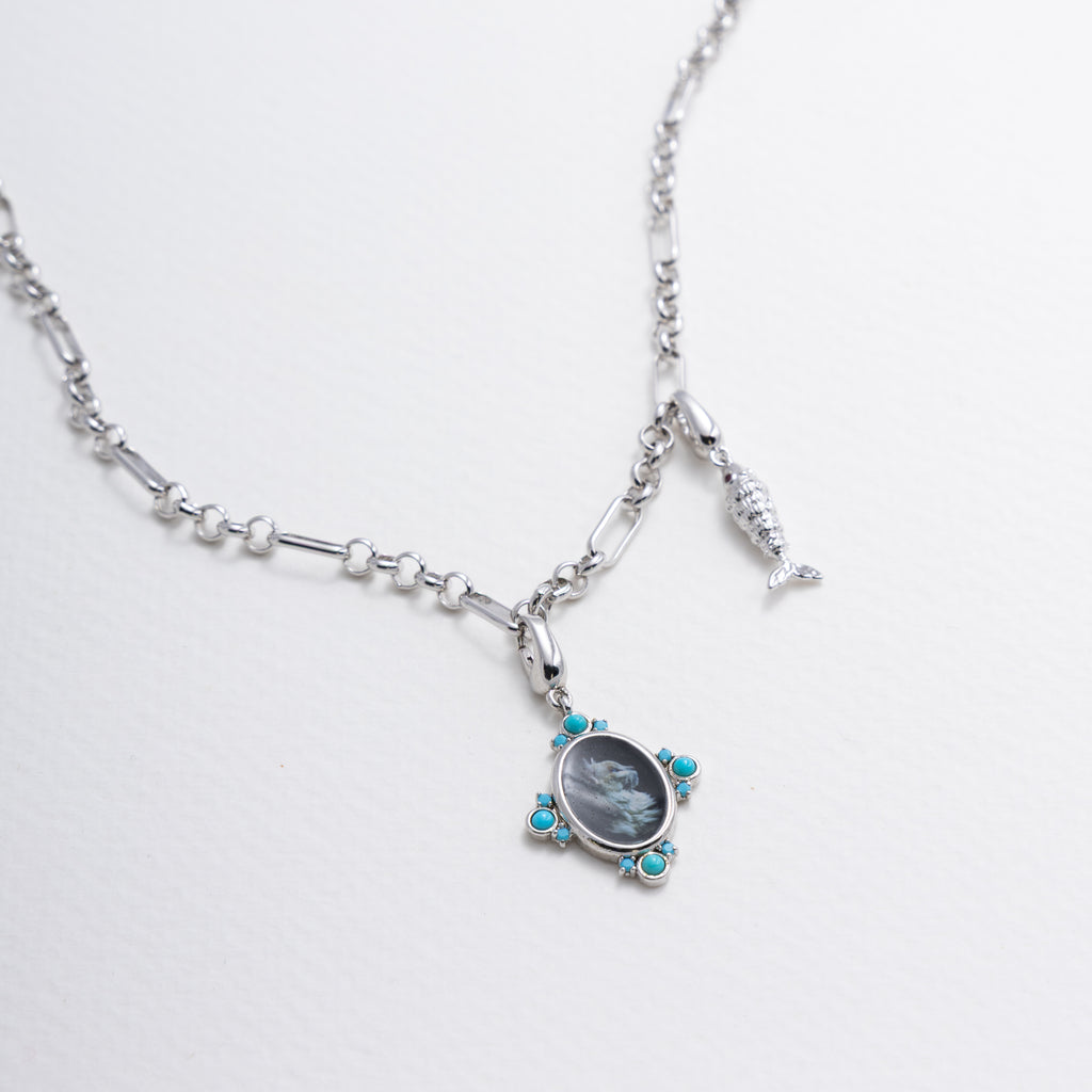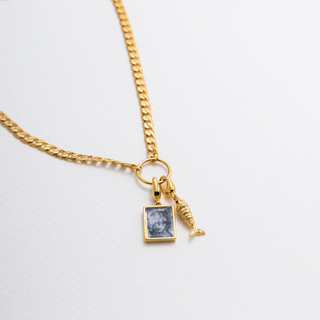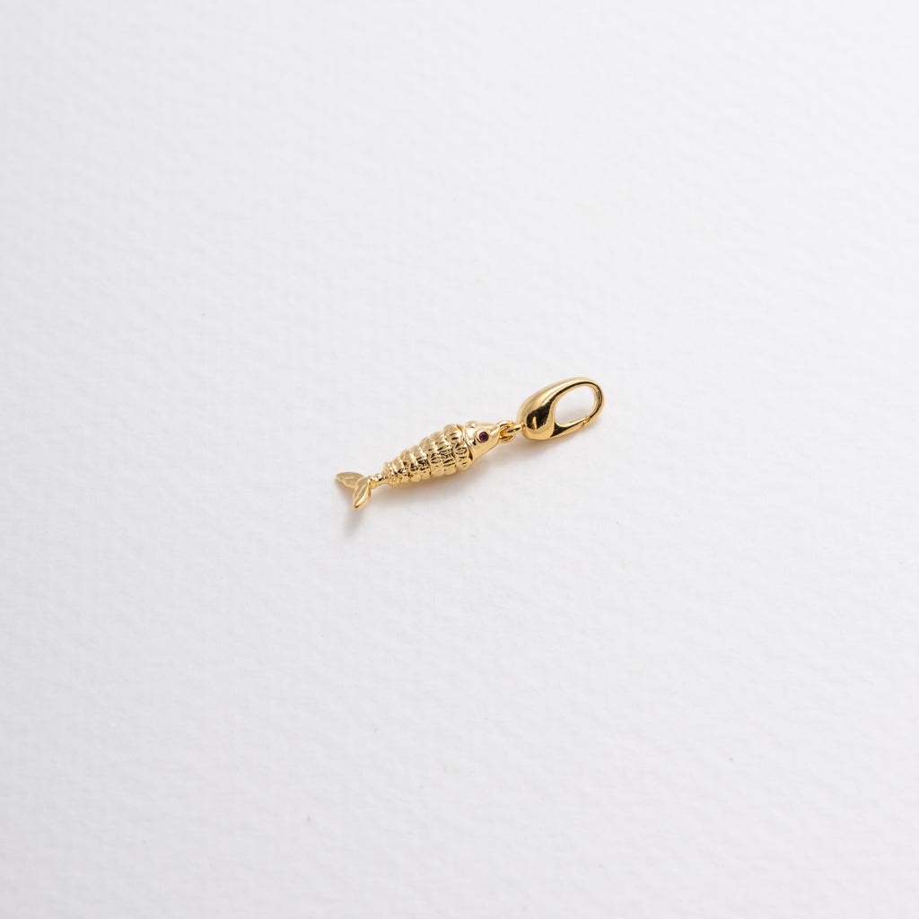 The Caspian Fish Charm brings a touch of texture to your collection. Its refined details and lightweight feel make it a natural fit for daily wear. Style it solo for something clean and minimal, or layer it with our portrait charms for a little more dimension. Easy to wear. Easy to love.